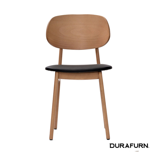The Durafurn Ban Chair Vinyl Seat is manufactured using a solid European beech wood frame. It is a chair designed to withstand commercial use.