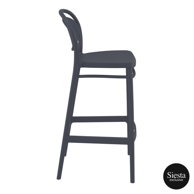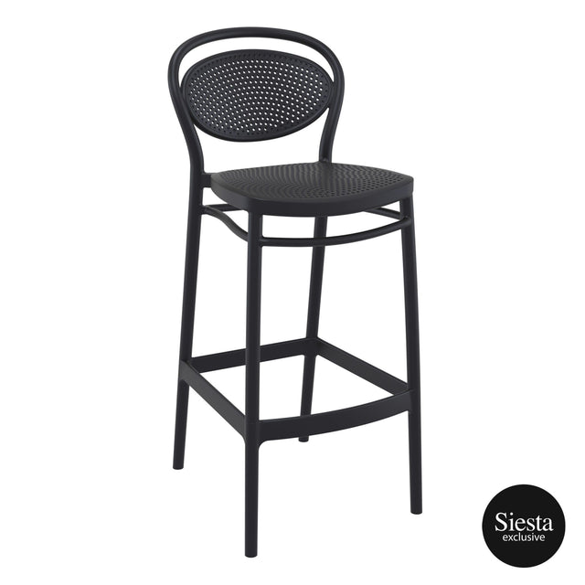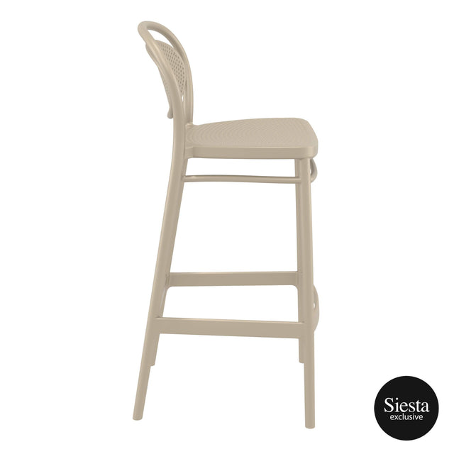 Marcel bar stool h.75 cm is produced with a single injection of polypropylene reinforced with glass fibre obtained by means of the latest generation of air moulding technology with neutral tones. For indoor and outdoor use.
