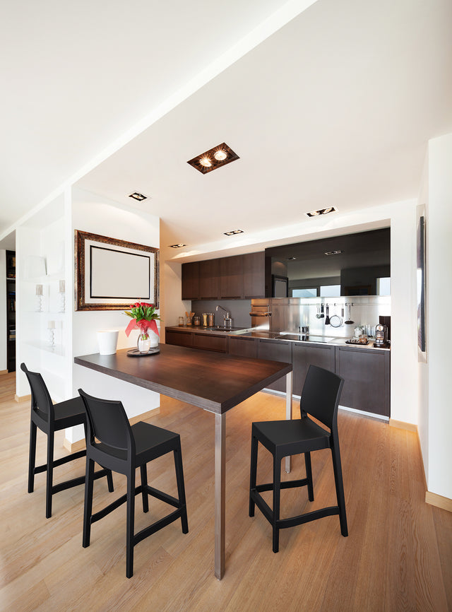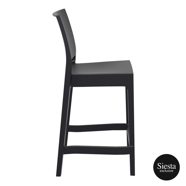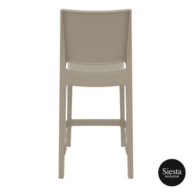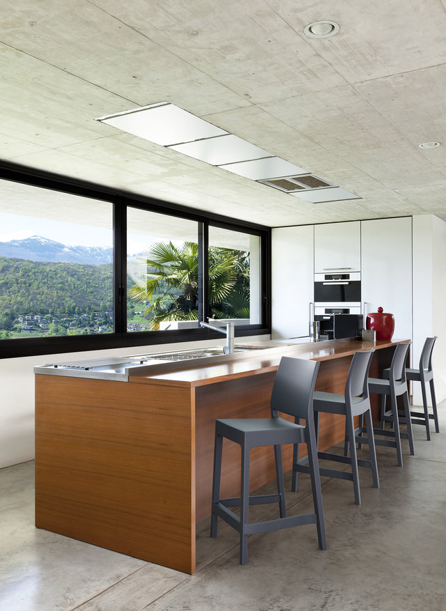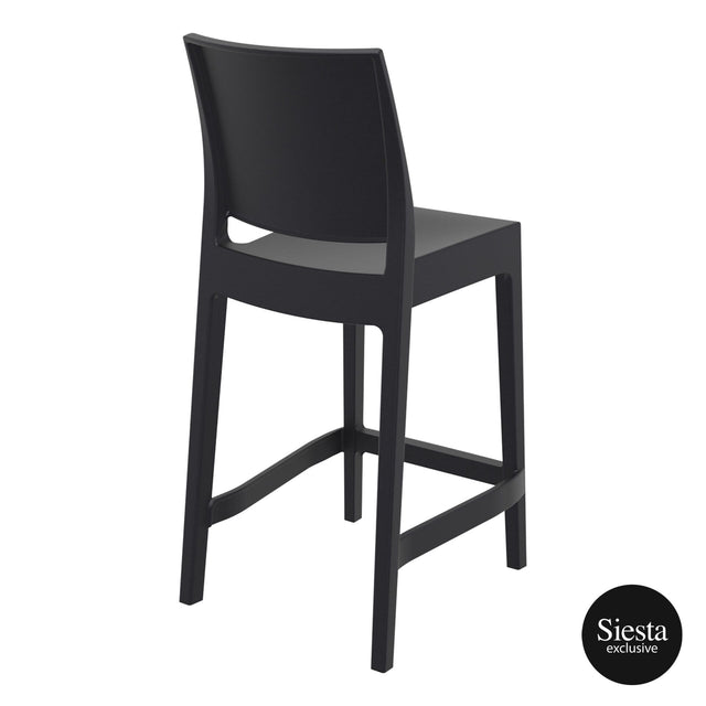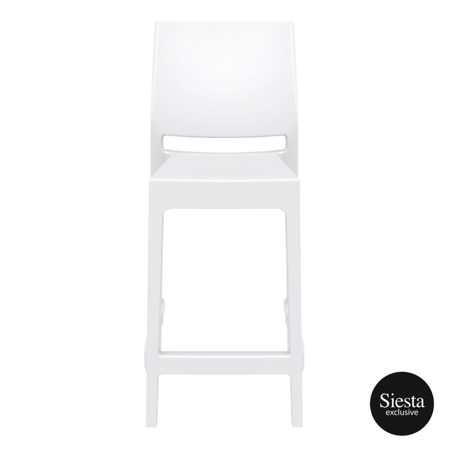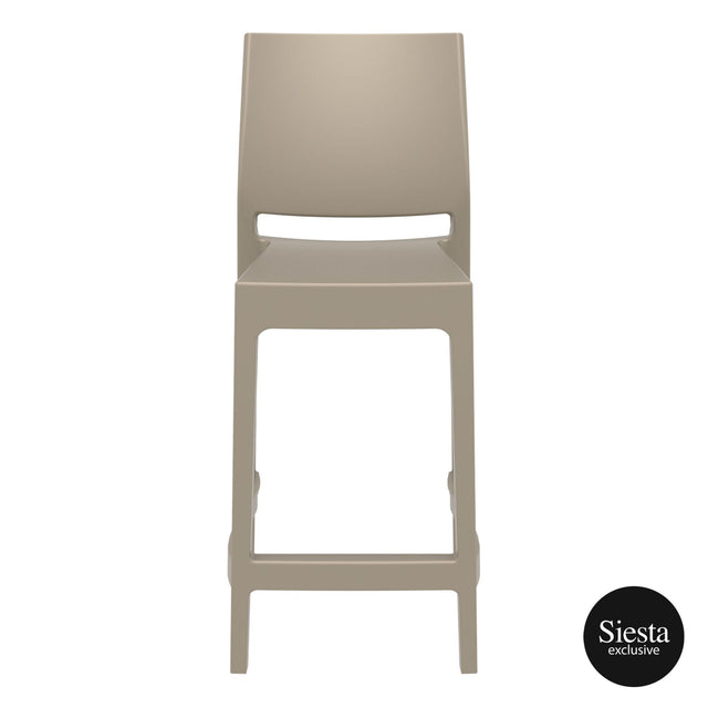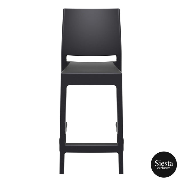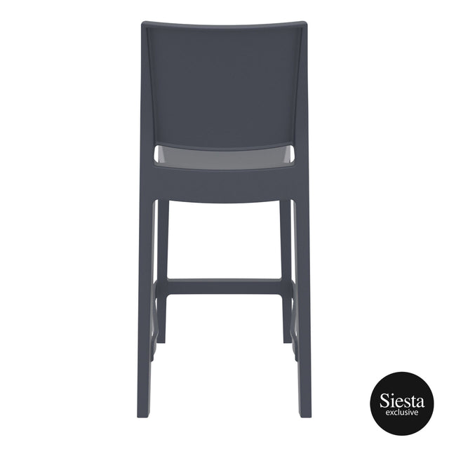Maya stacking bar stool h.65 cm is produced with a single injection of polypropylene reinforced with glass fiber obtained by means of the latest generation of air moulding technology with neutral tones. For indoor and outdoor use.? Available in Black, Dark Grey, Taupe and White.