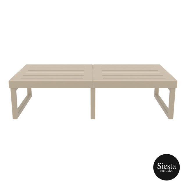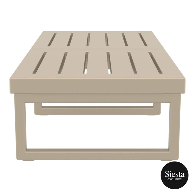 Mykonos Lounge Table XL is made of durable weather-resistant resin. Non-metallic frame will never unravel, rust or decay. It is UV protected which insures the colours will not fade. Can be disassembled. For indoor and outdoor use. The Mykonos Lounge Table XL can be used as a backless seat as part of the Mykonos Lounge.