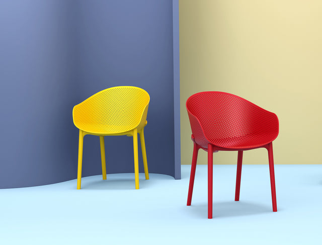 - The Sky Chair chair is produced with polypropylene reinforced with glass fiber obtained by means of the latest generation of air moulding technology