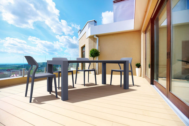 Extendible table from 180 to 220 cm in polypropylene reinforced with glass fiber. Easily expandable, giving you a choice of two size options. Smart extending mechanism makes it easy to adjust the table to your preferred size. For indoor and outdoor use with UV protection.