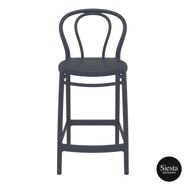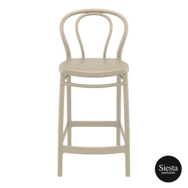 Victor bar stool h.65 cm is produced with a single injection of polypropylene reinforced with glass fibre obtained by means of the latest generation of air moulding technology with neutral tones. For indoor and outdoor use.